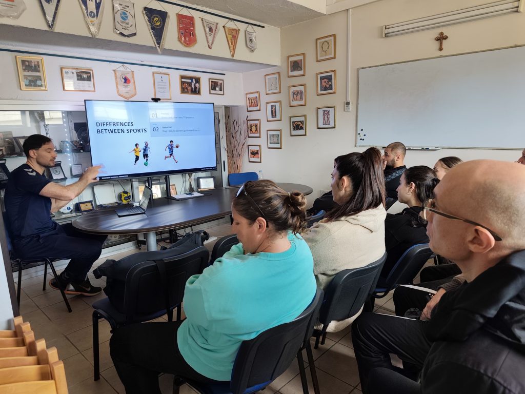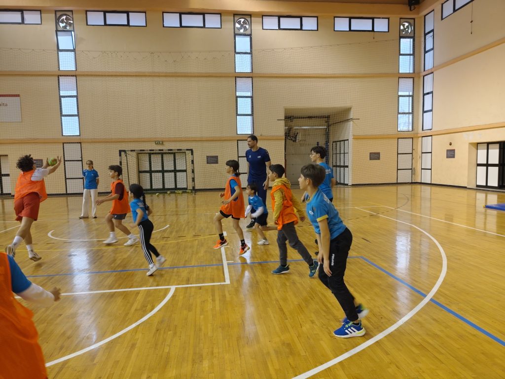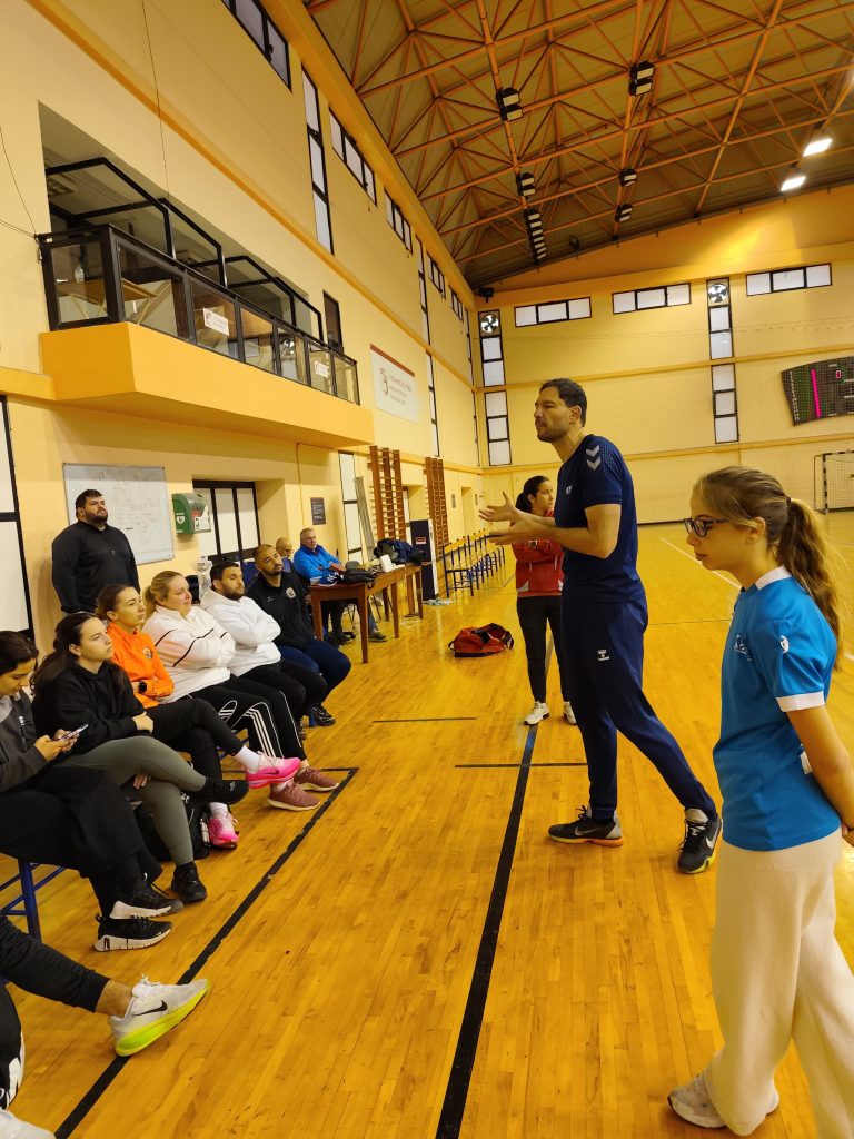 Following an opening day focused on foundational theory, the second day shifted emphasis towards practical application, centring on the Association’s youngest handball players. Participants engaged directly with the children in a structured environment, applying key coaching principles through drills, movement exercises, and game-based learning scenarios.