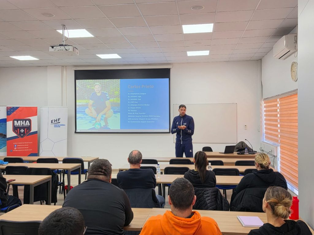 “This weekend has been both engaging and highly interactive. The willingness of the Maltese participants to learn, adapt, and actively engage in the sessions clearly reflects a strong drive to develop and improve the sport. That mindset is essential at grassroots level, and it is very encouraging to see such commitment to building a solid foundation for handball in Malta.” – Carlos Prieto – Olympic Medallist and EHF Expert